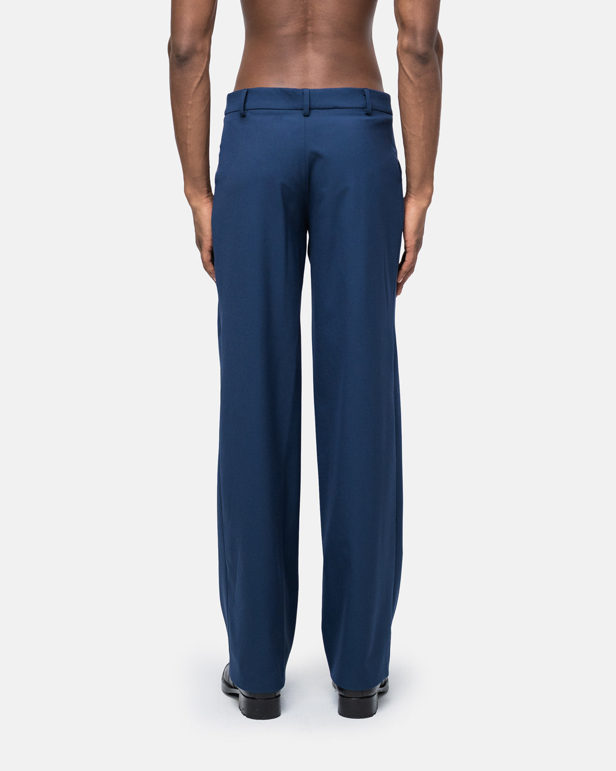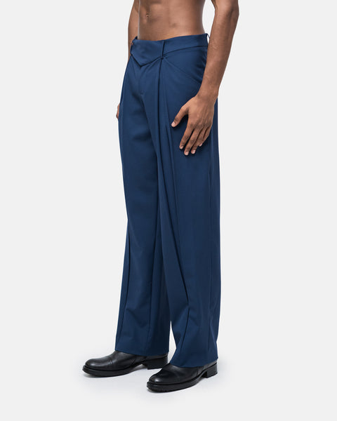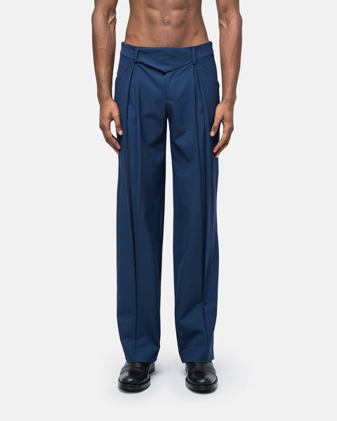 Wide-leg trousers with graphic waistband V-shaped seam, and pleats down the centre of the legs