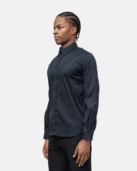 Cotton Shirt with graphic design on the chest and placket with concealed buttons