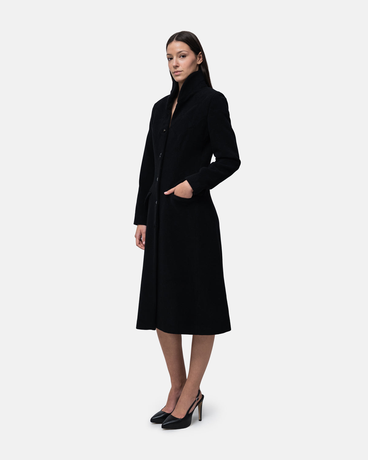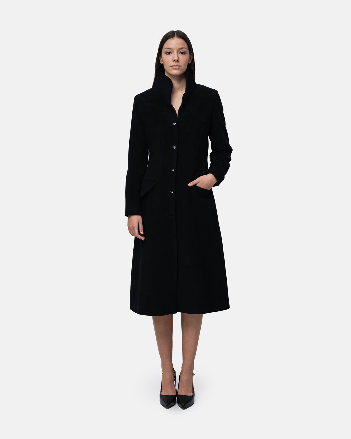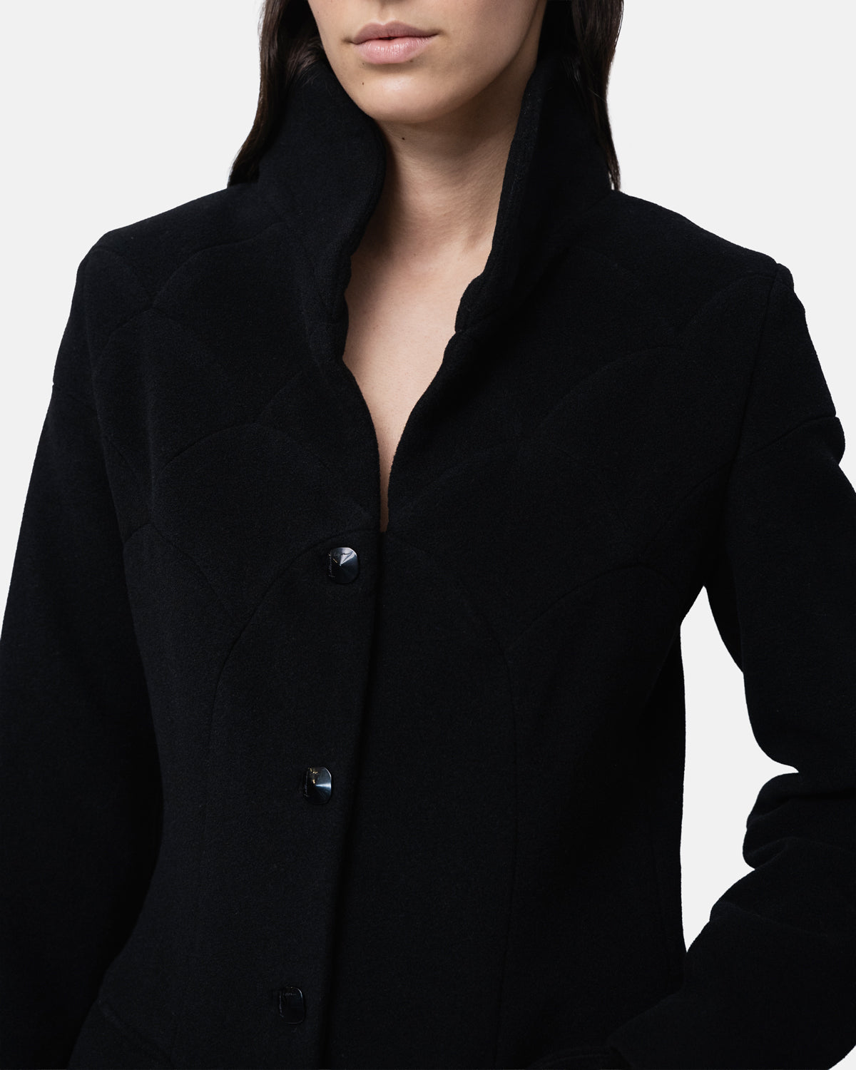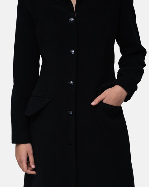 Wool long Overcoat with graphic patchwork throughout