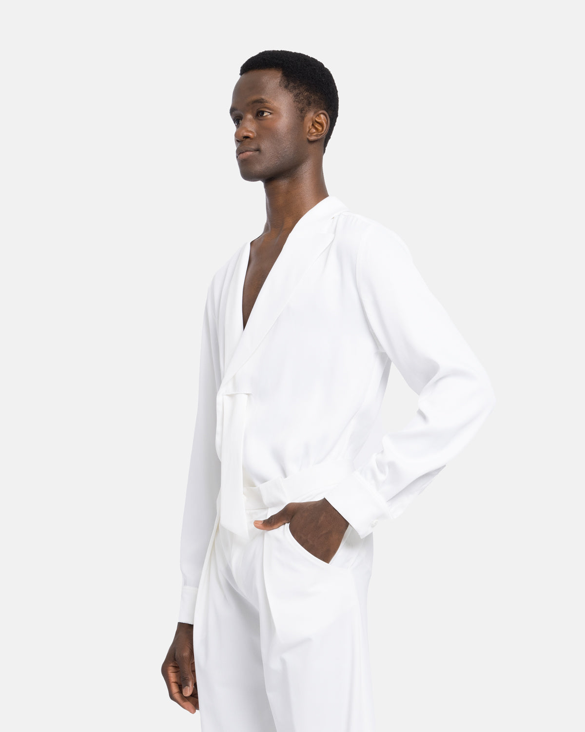 Chemise à manches longues avec un col asymétrique effet cravate.