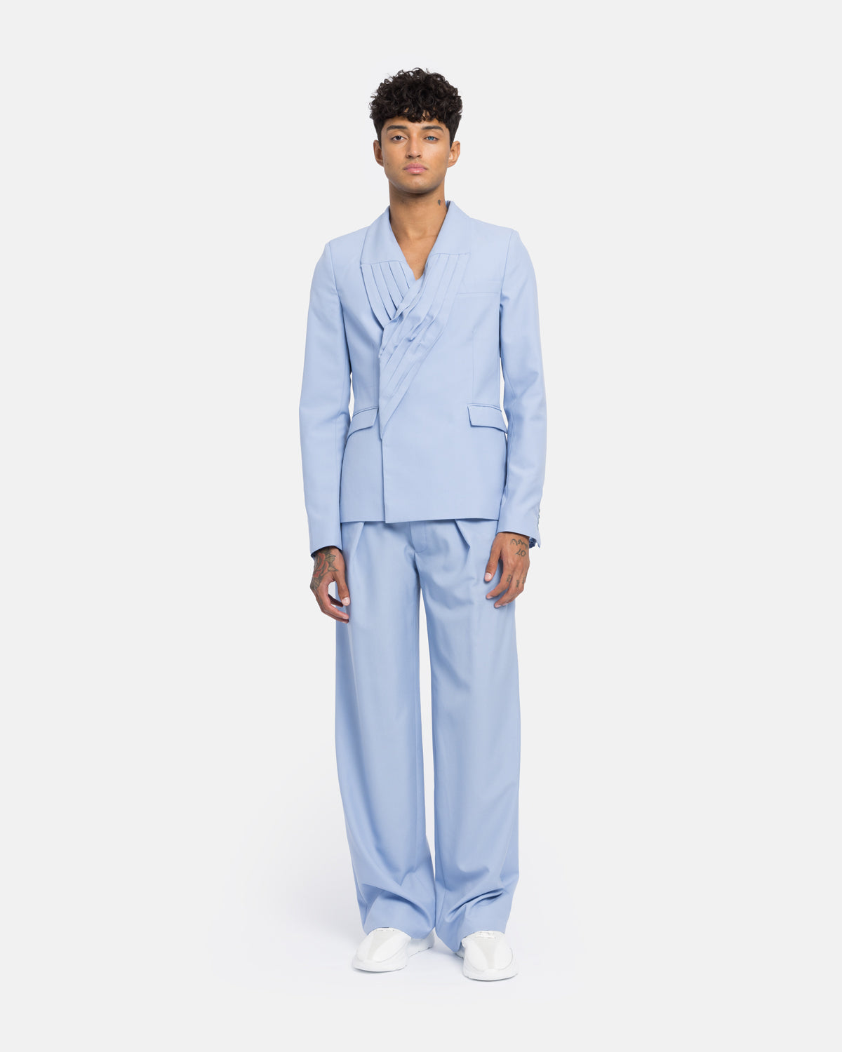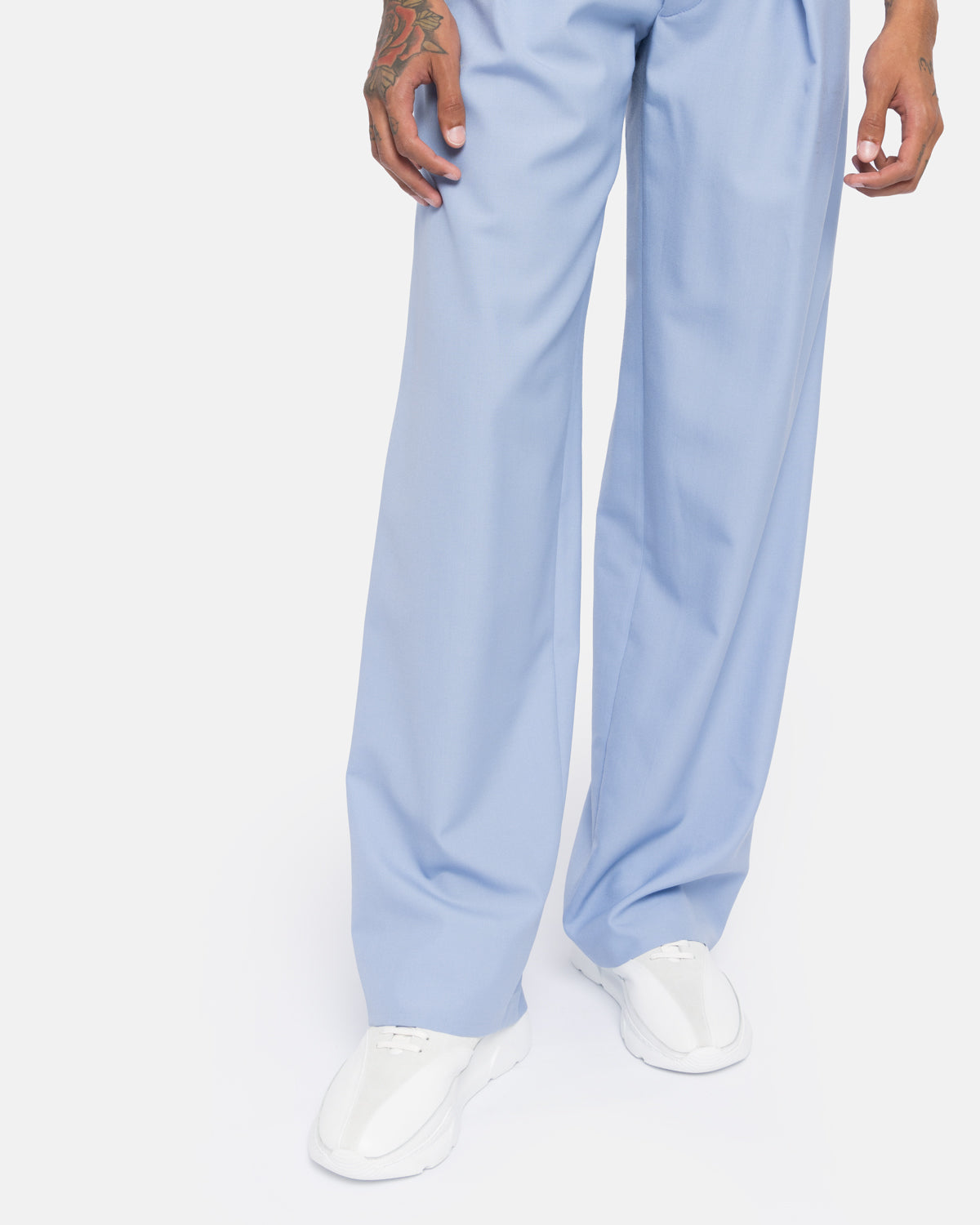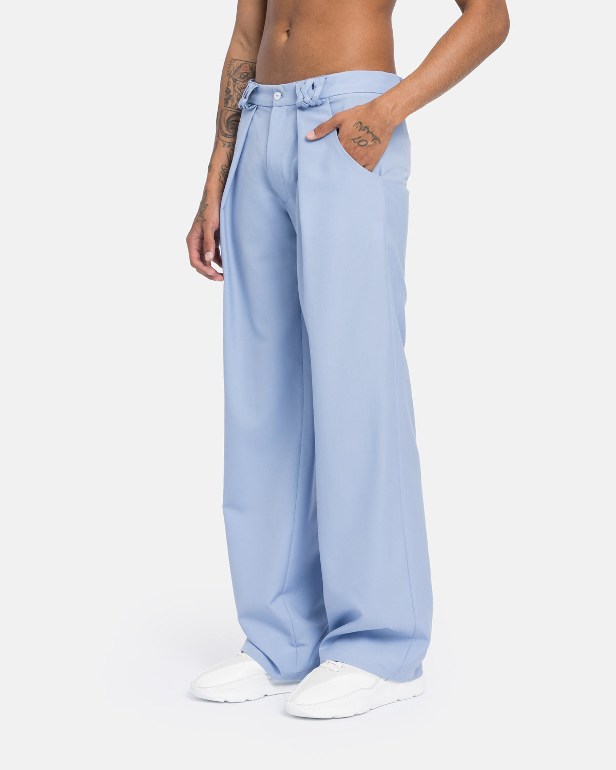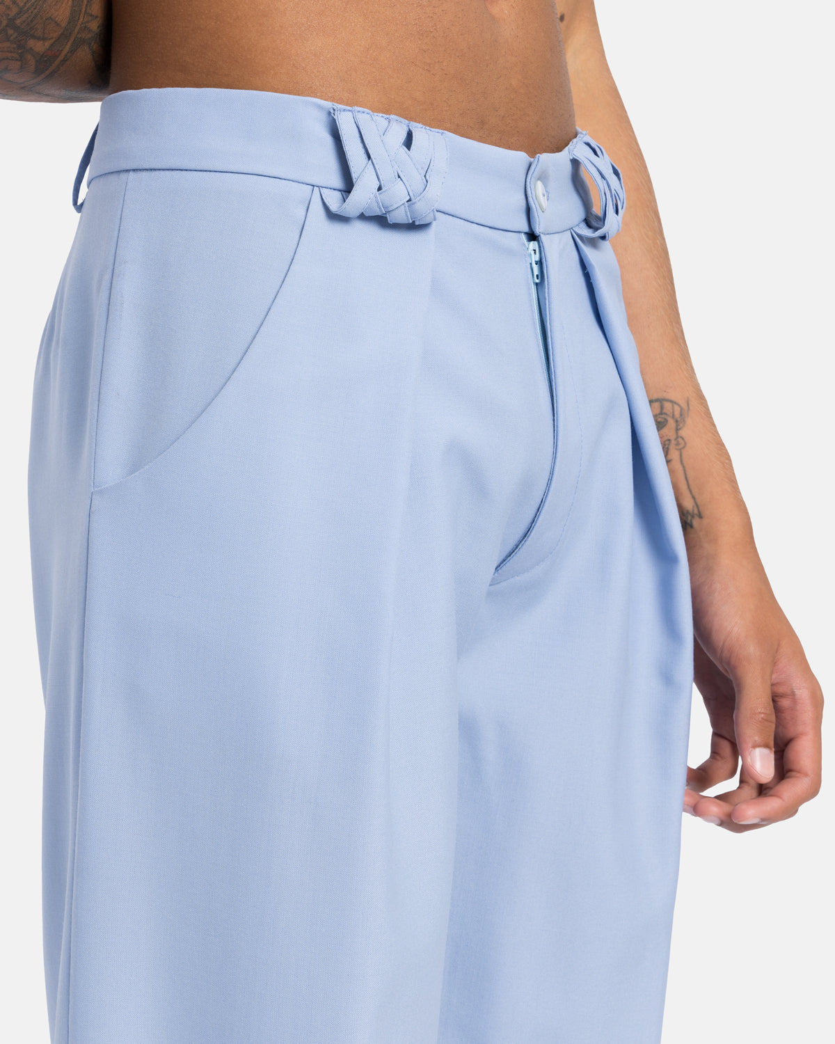 Pantalon large avec plusieurs côtes et passants de ceinture.