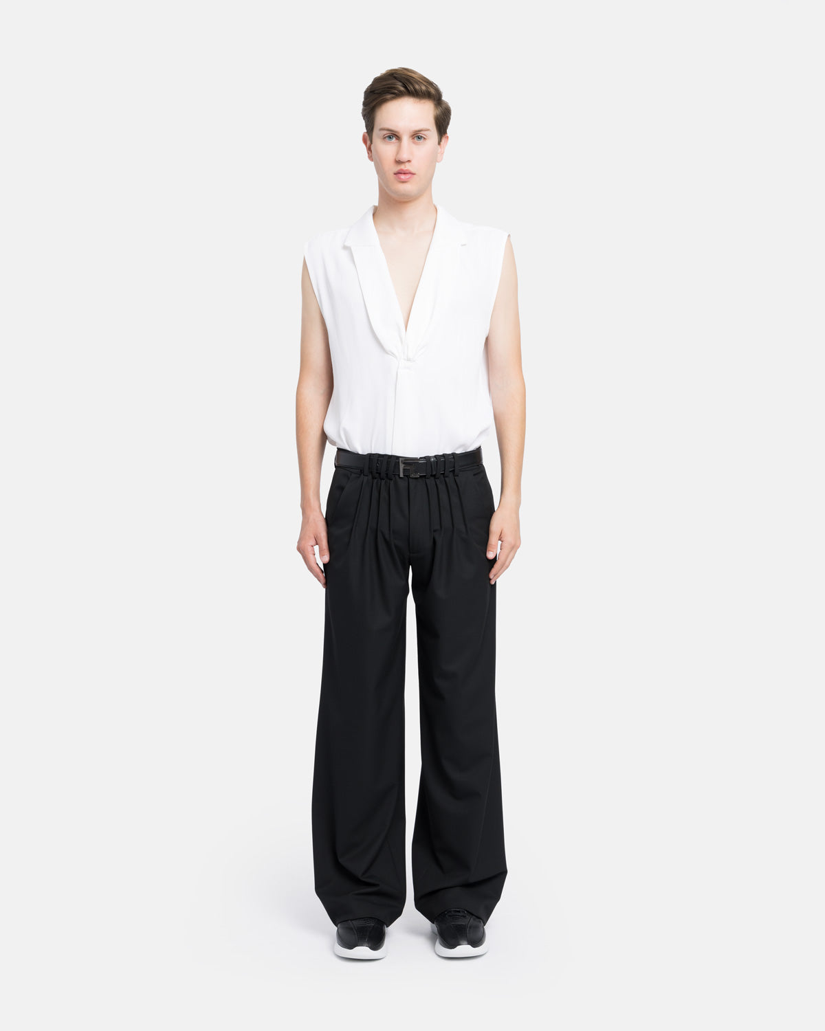 Pantalon à côtes multiples, à passants de ceinture multiples et à jambe large en forme de V
