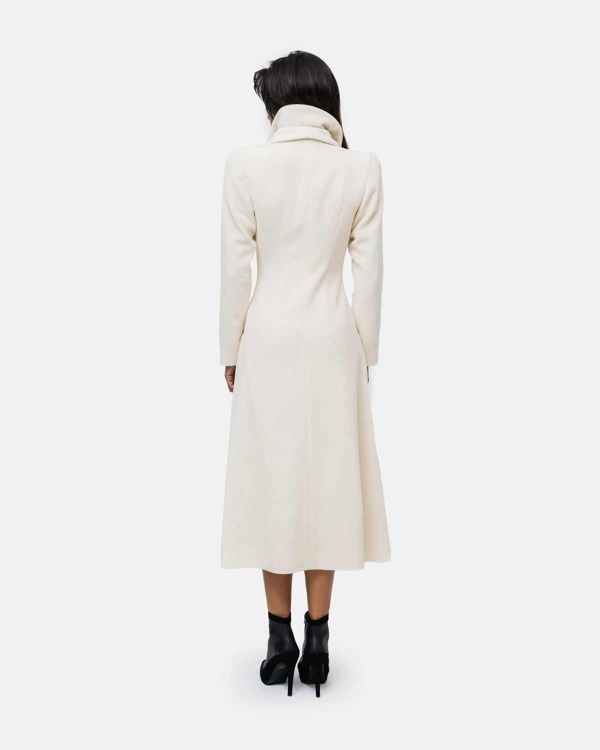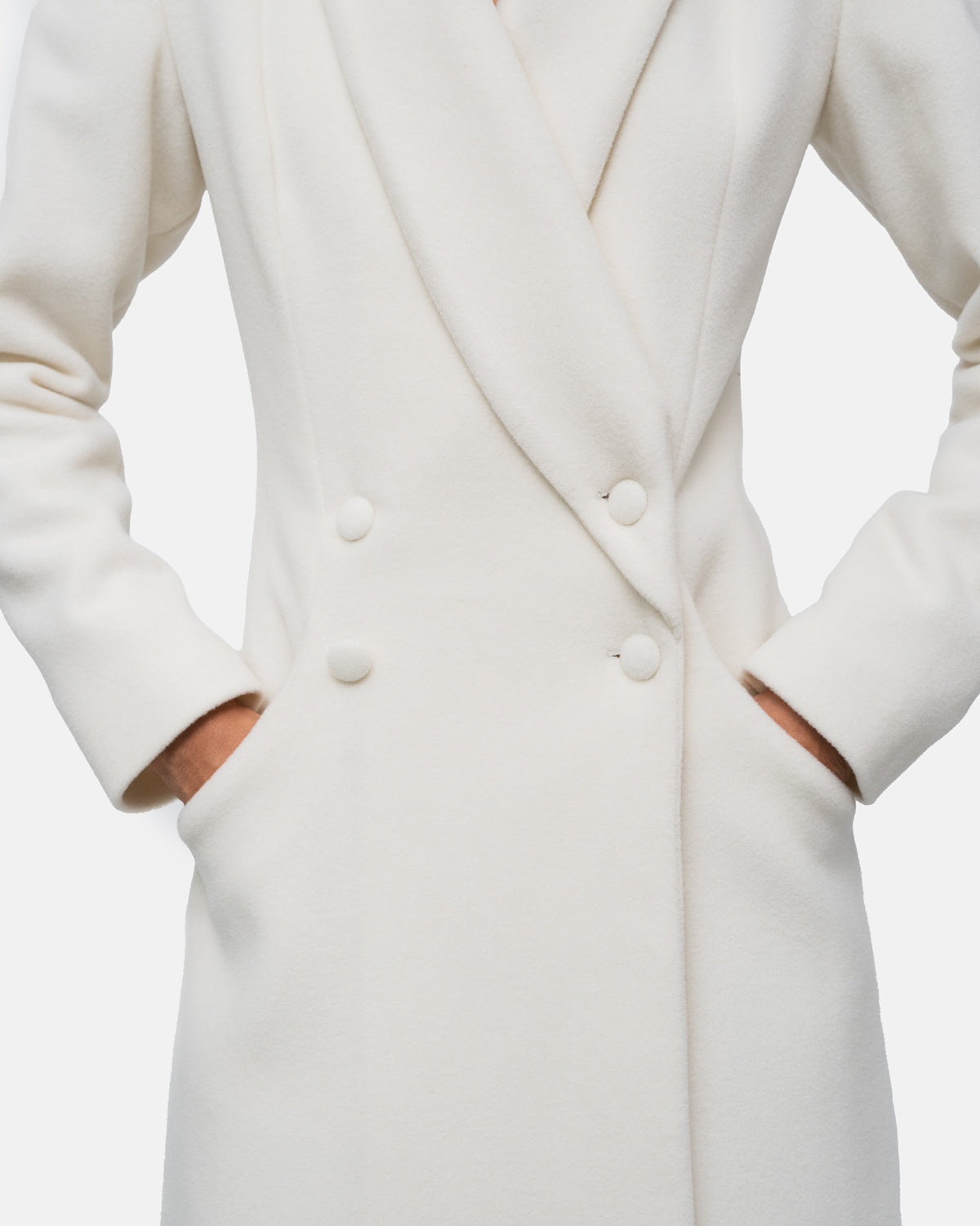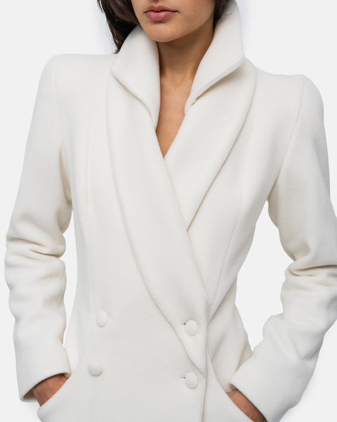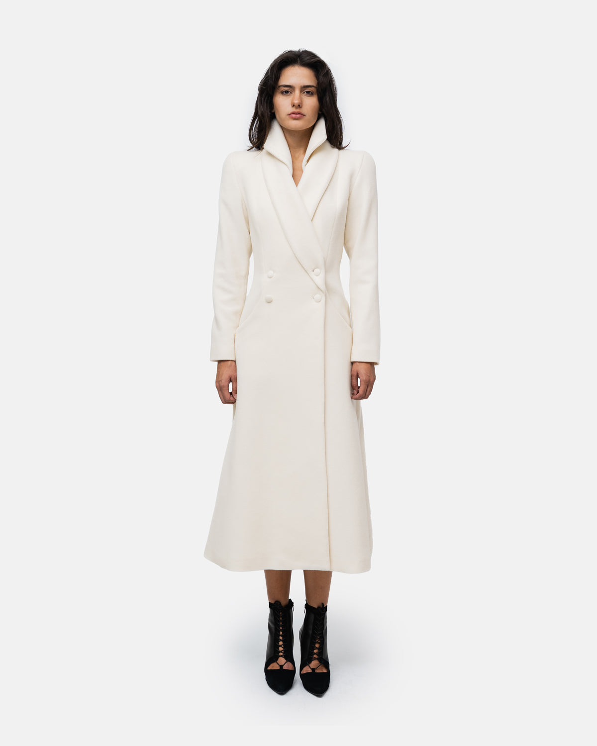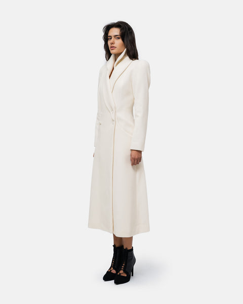 Long coat in pure wool, double collar, double-breasted with 4 buttons
