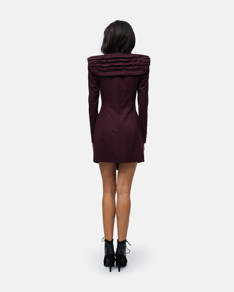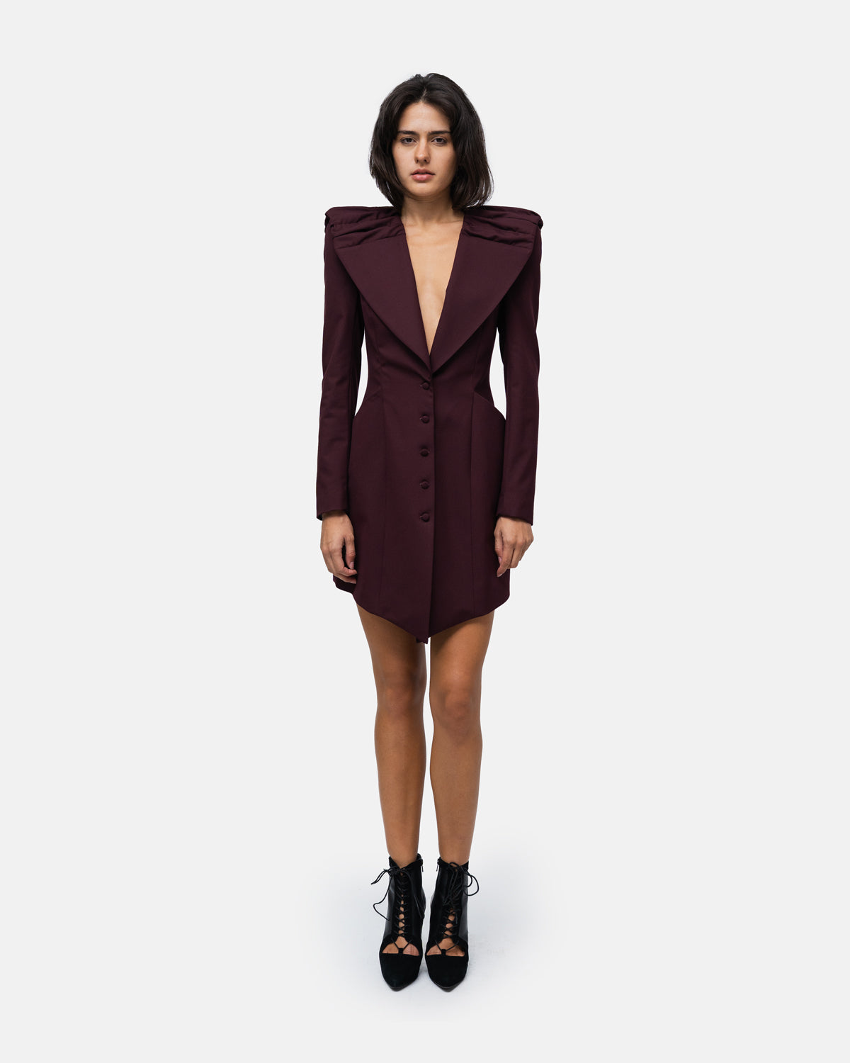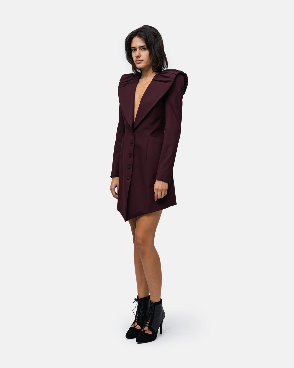 Belted Robemanteau with high, broad shoulders and a draped collar with a cape effect at the back, V-neck, fastens with covered buttons