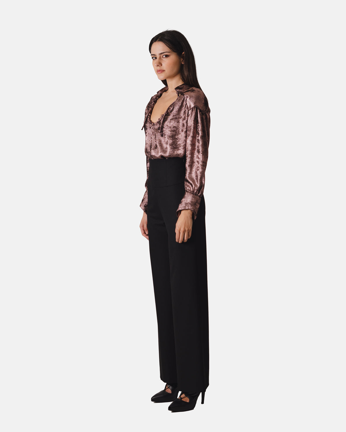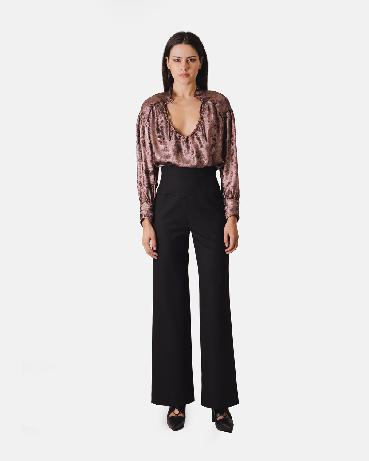 Flowing blouse with long sleeves and a round neckline that adjusts with a drawstring fastening