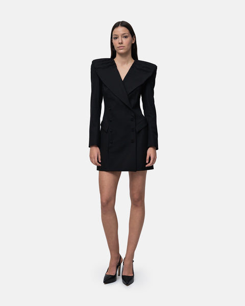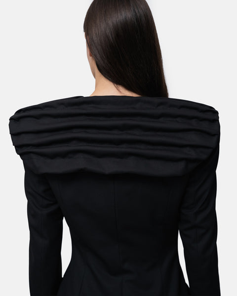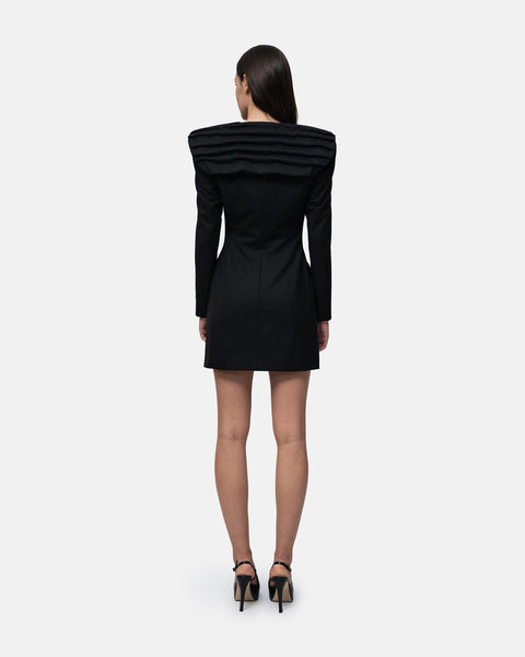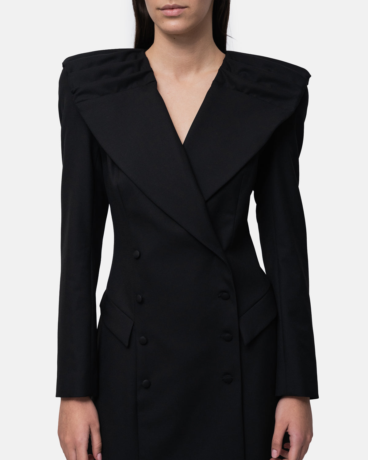Long-sleeved wrap Robemanteau with wide, high shoulders and a draped collar with a cape effect at the back