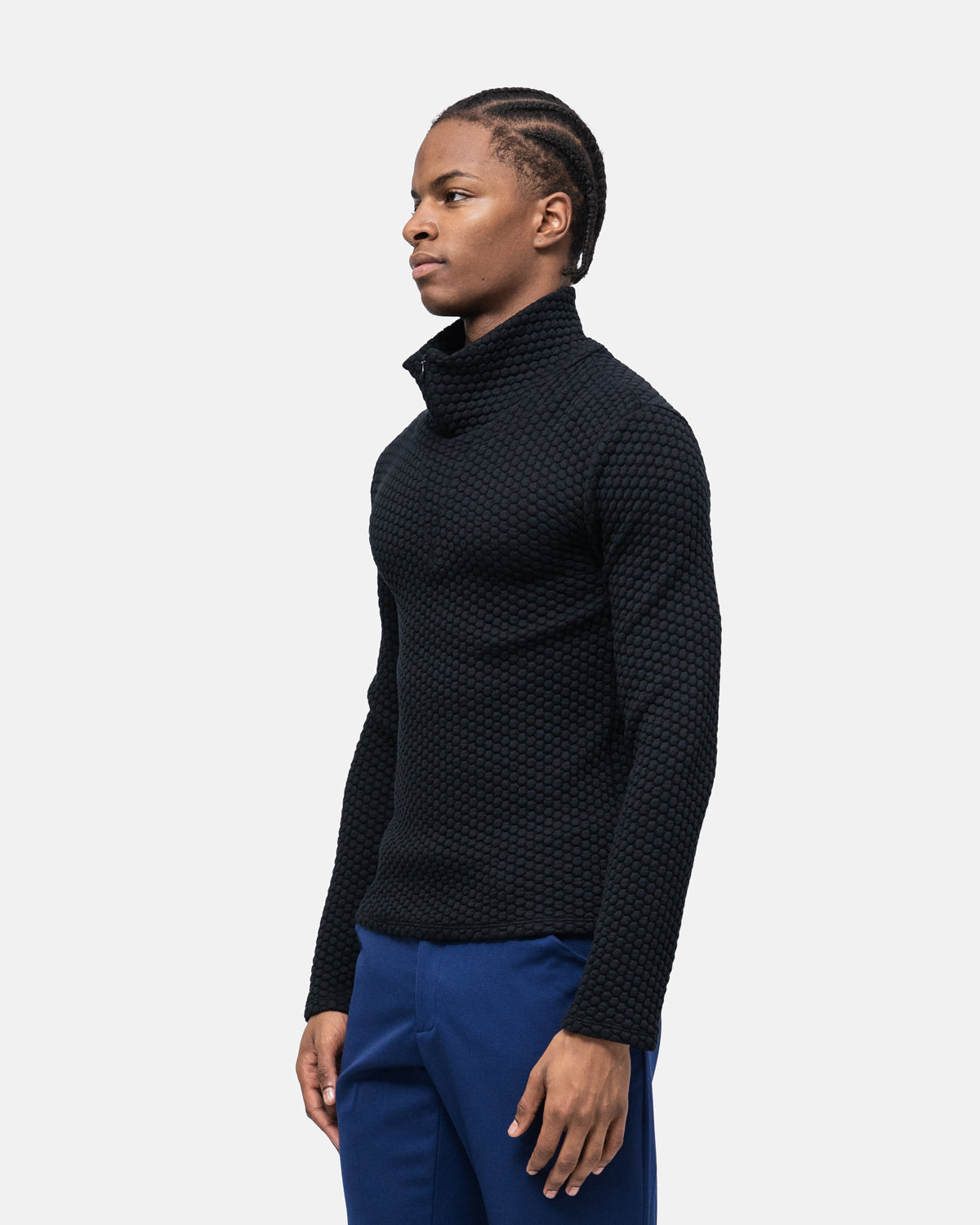 High-neck Jumper with graphic design on the neckline, fastens with a zip at the collar