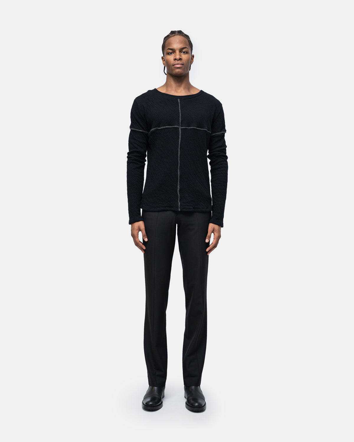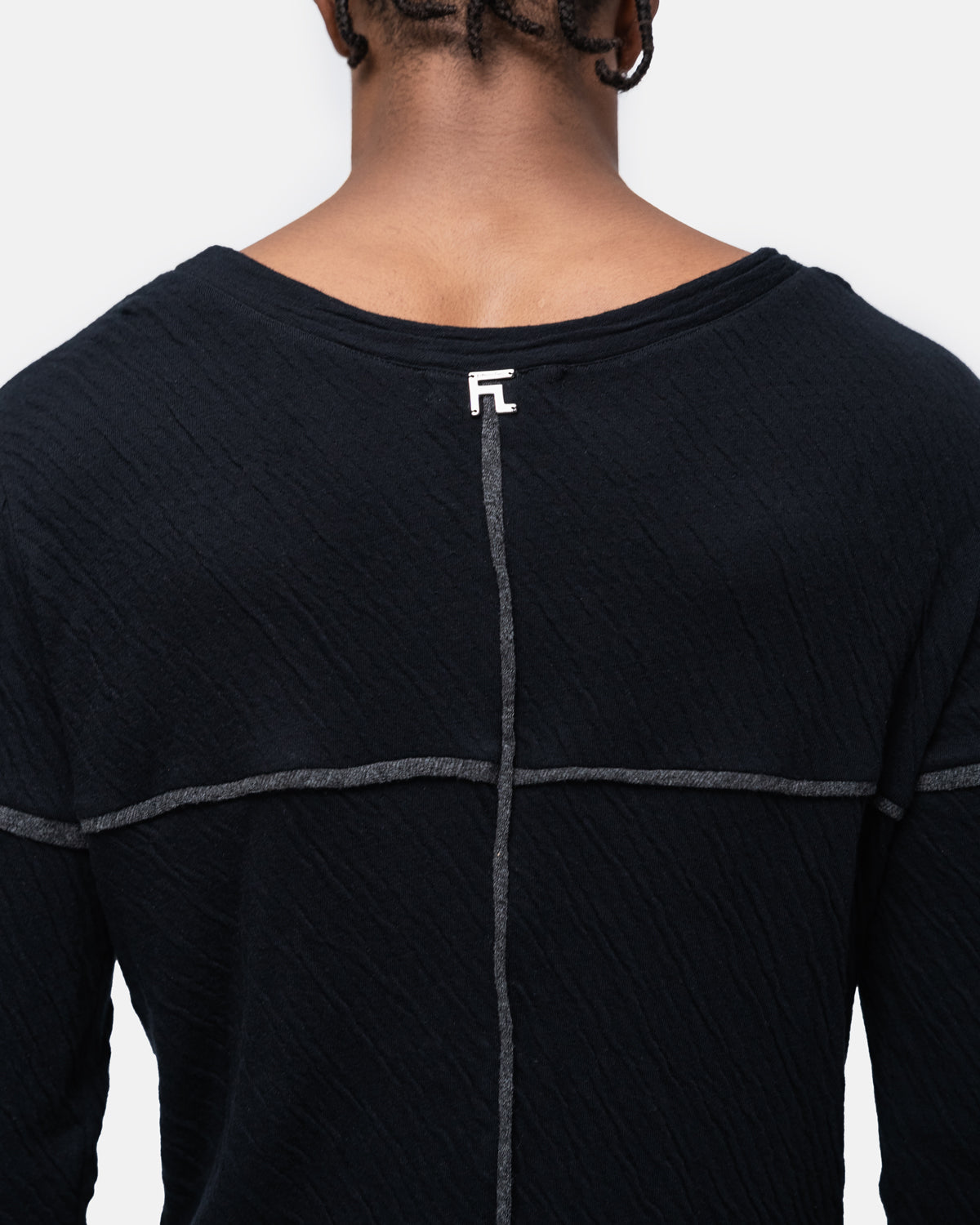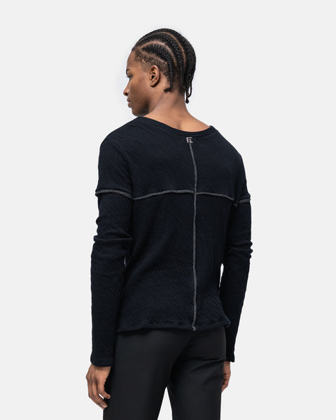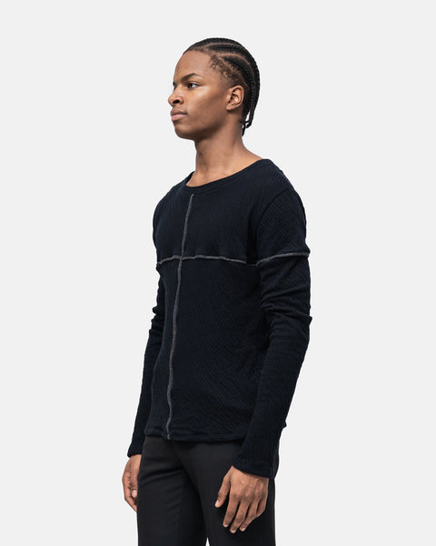 Long-sleeved jumper, open round neckline with graphic play of brightly coloured two-tone cut-outs