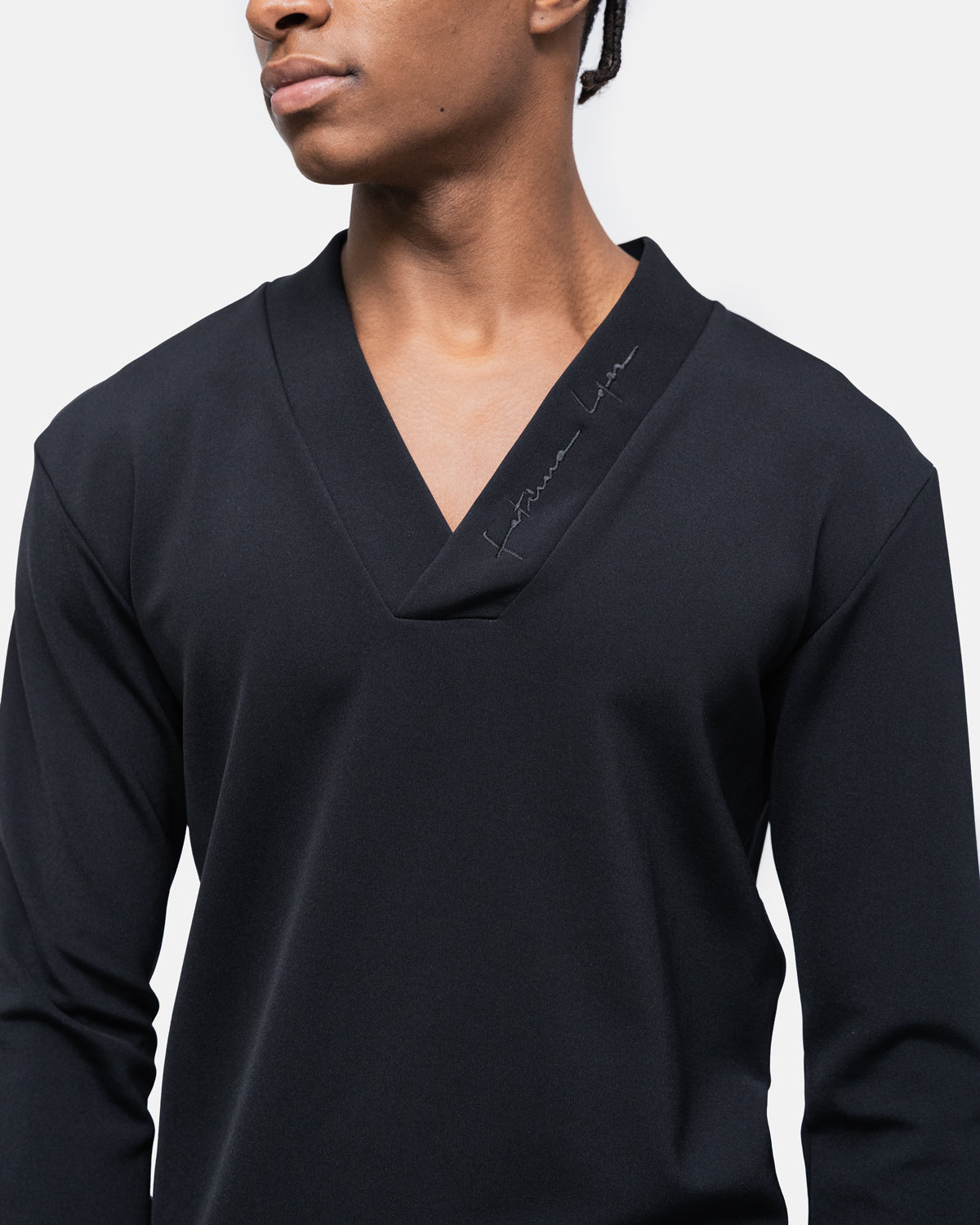 V-neck jumper with tone-on-tone embroidered Fátima Lopes logo