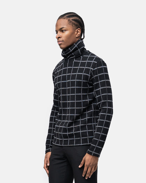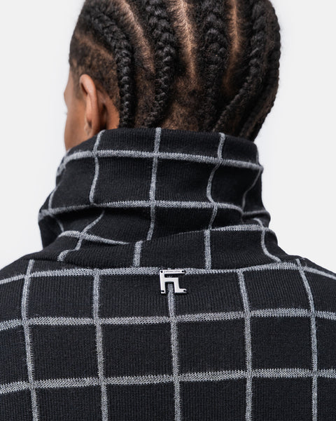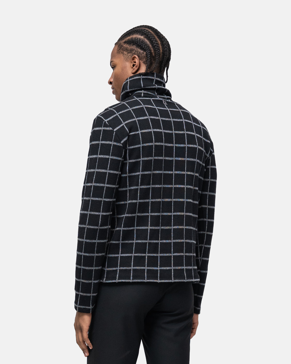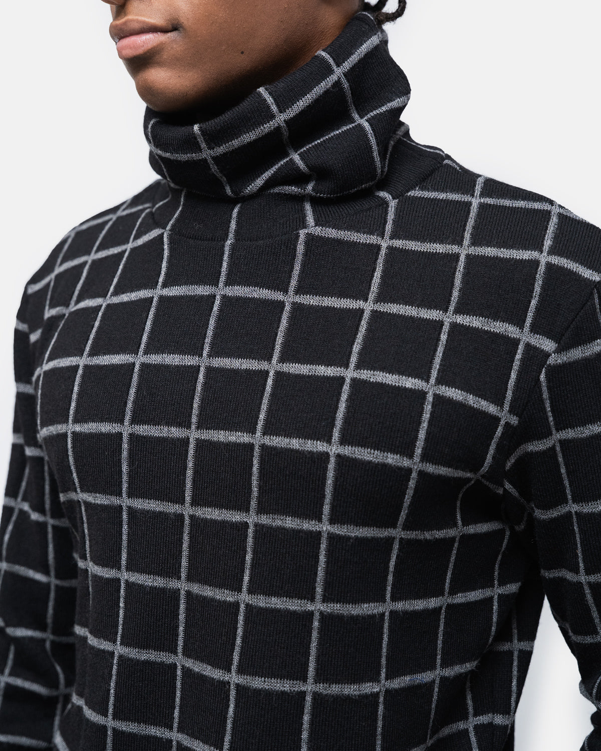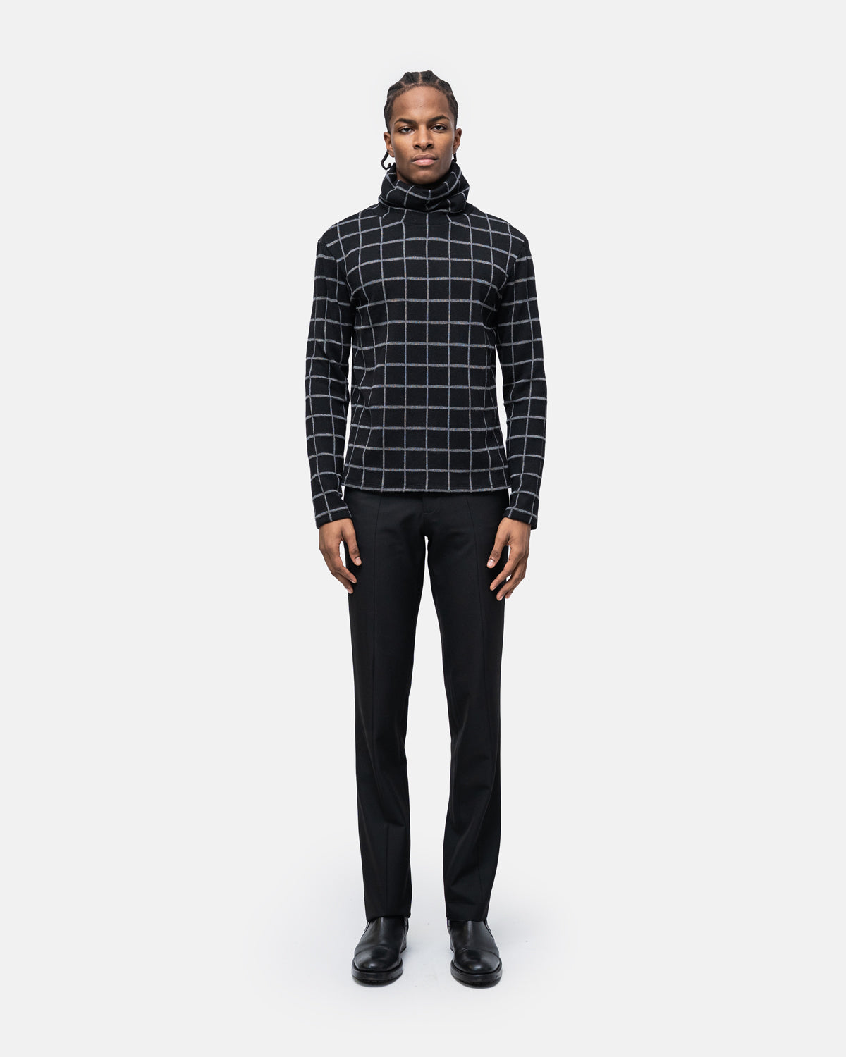 Open round neck Jumper with two-tone square pattern and metallic logo appliqué on the back