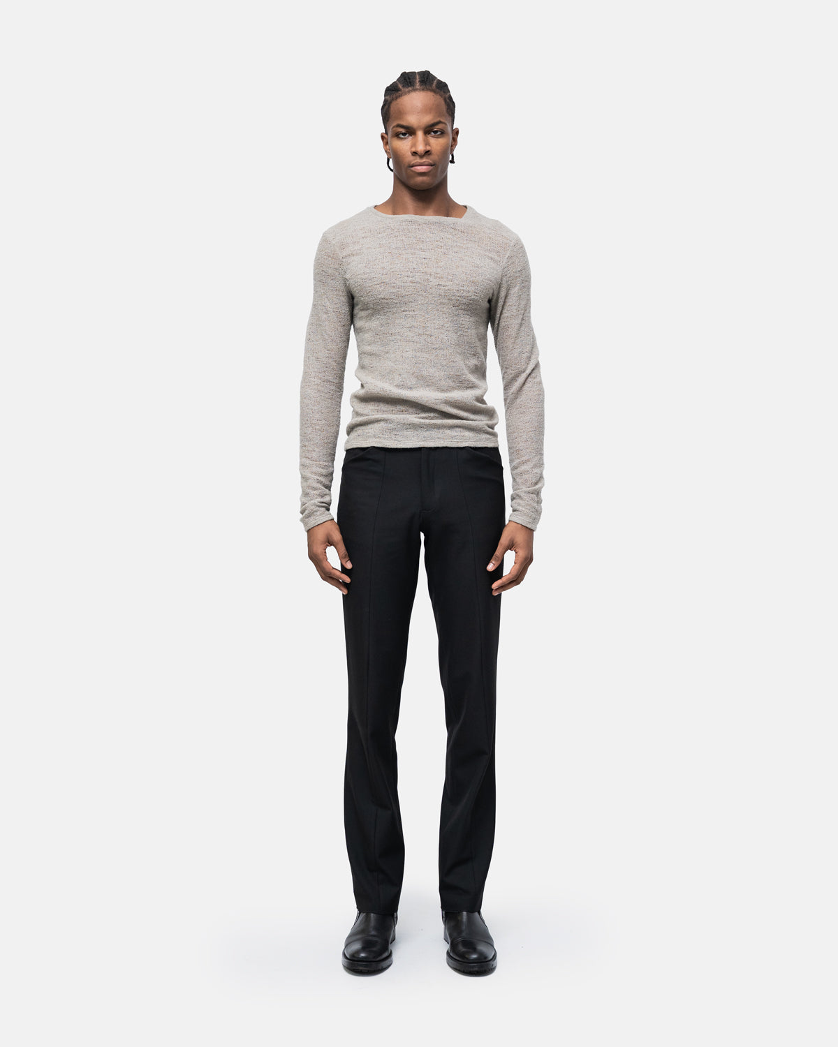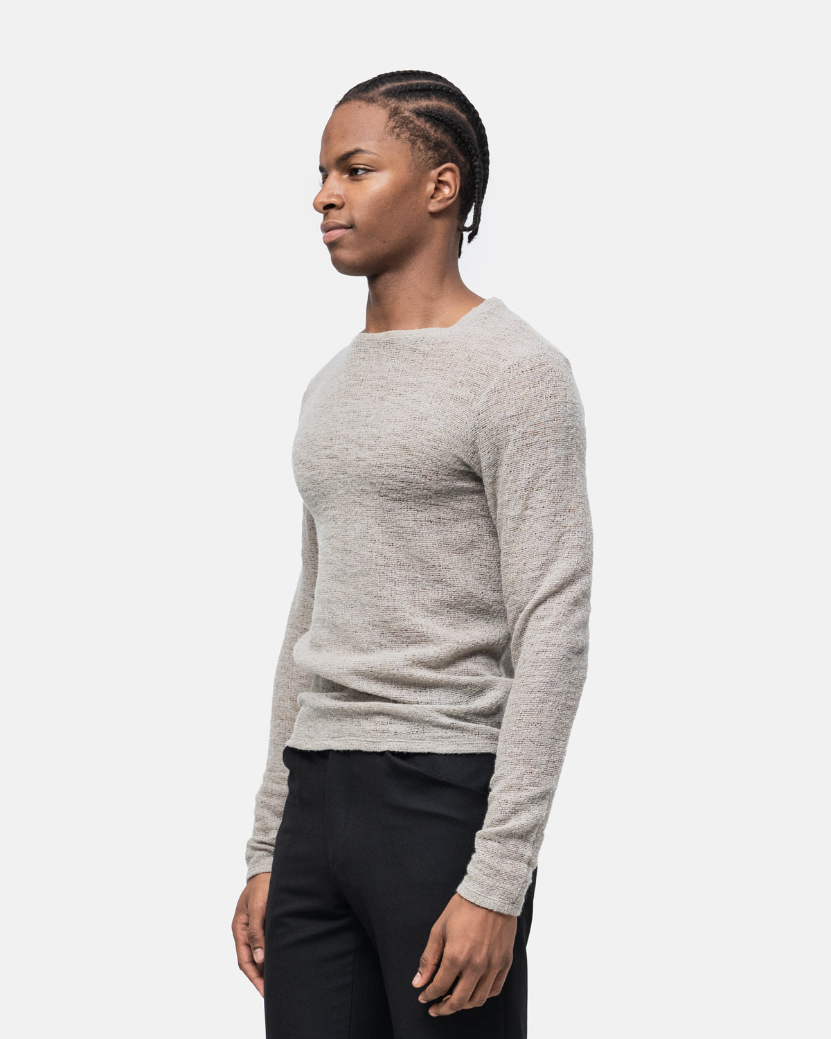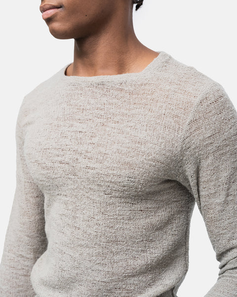 Very delicate, transparent sweater with an open round neckline. Take great care when washing, dry clean only.
