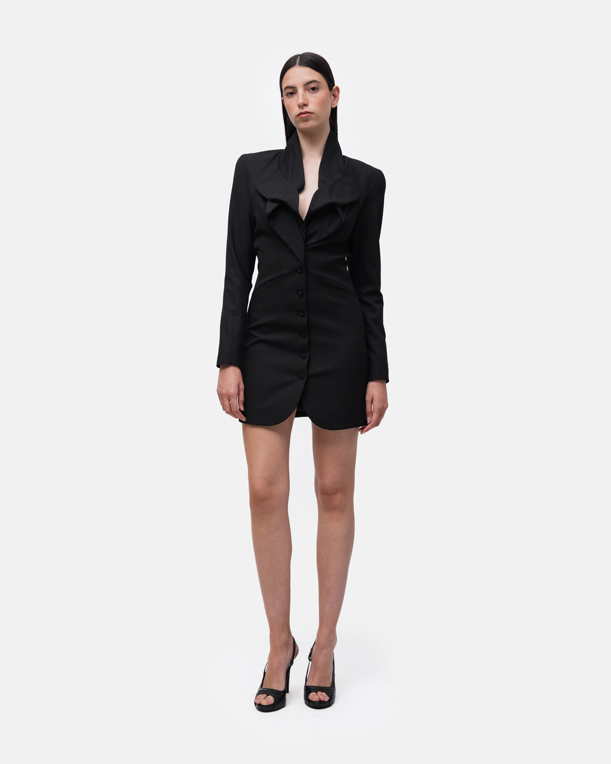 Vestido curto com cinto e gola com estampa floral e fecho com botões