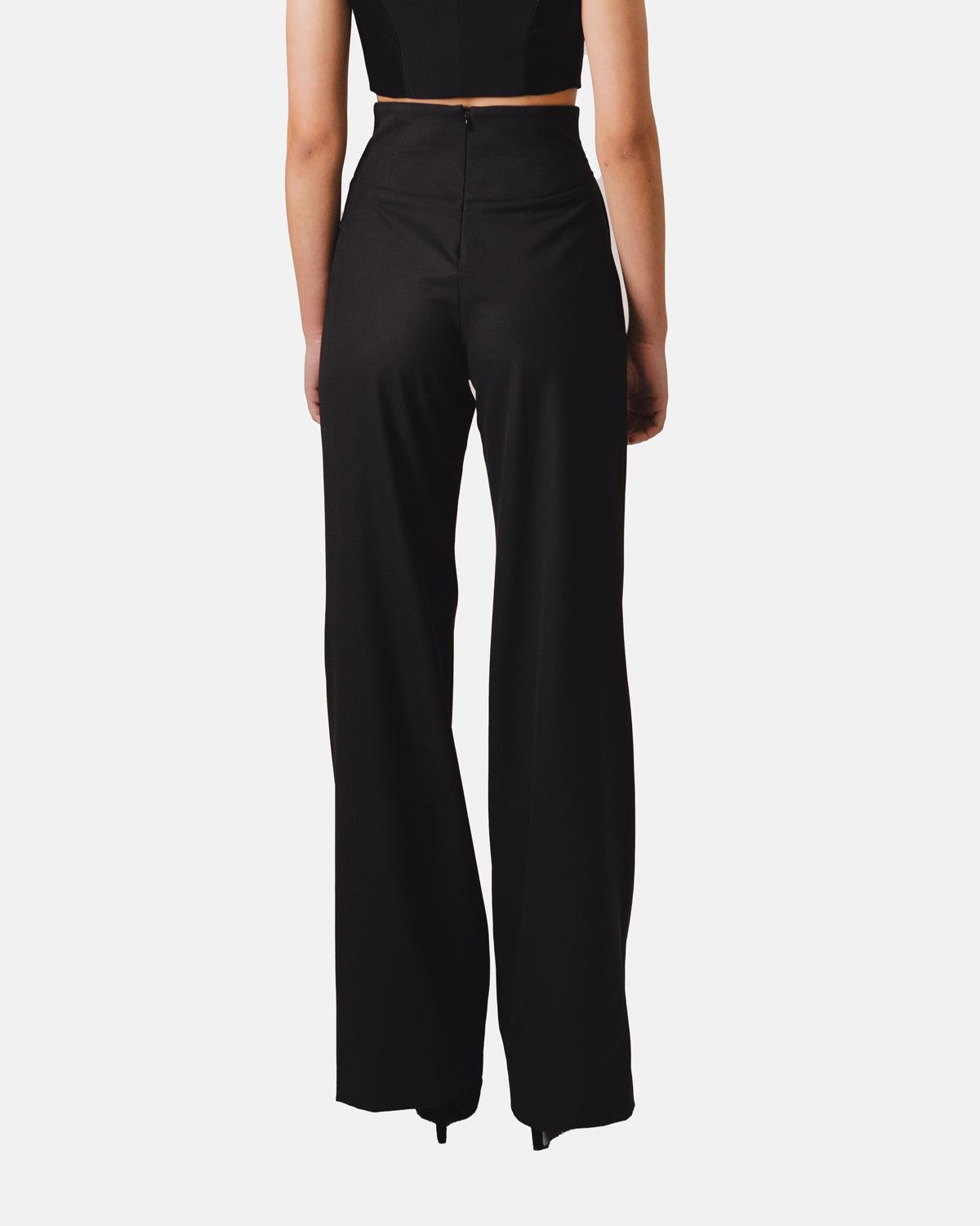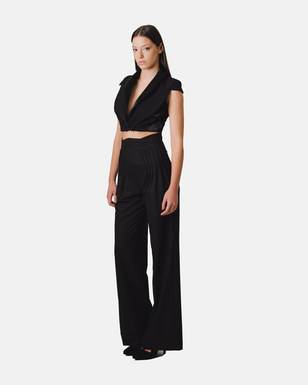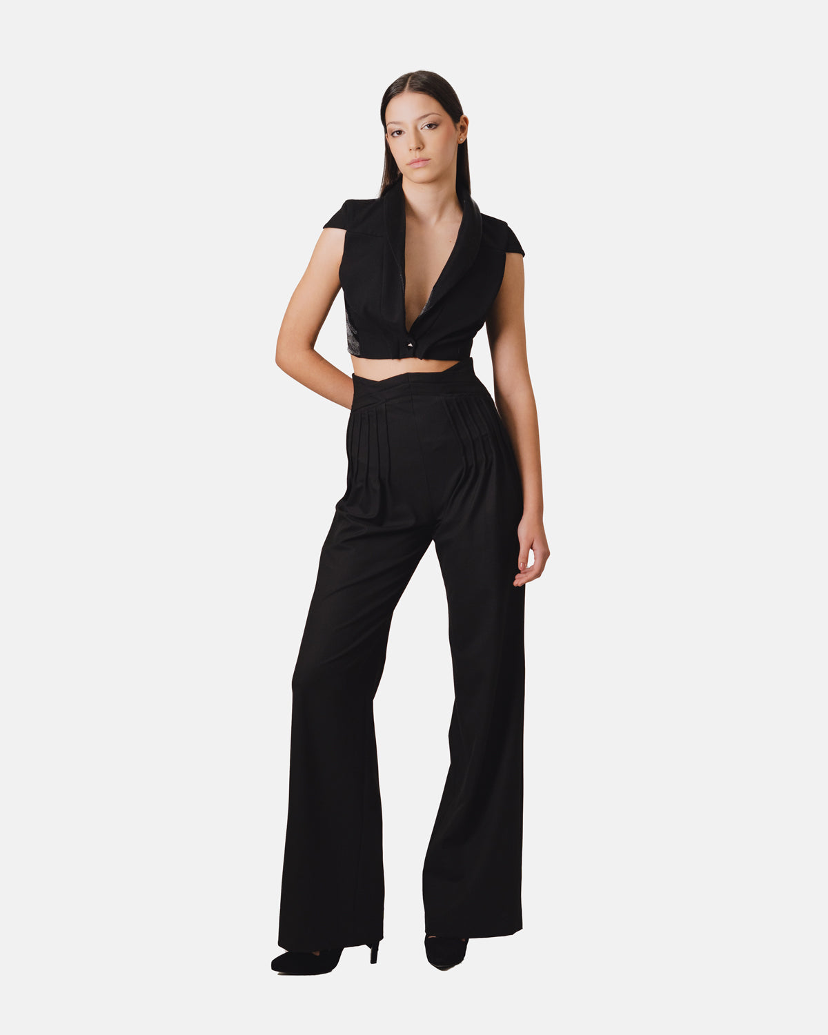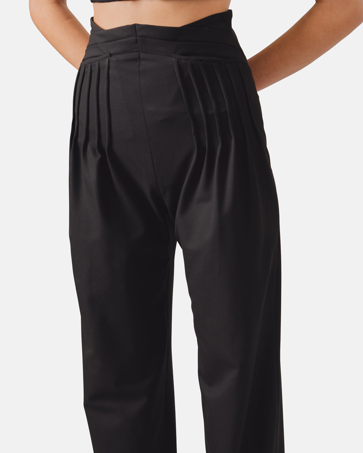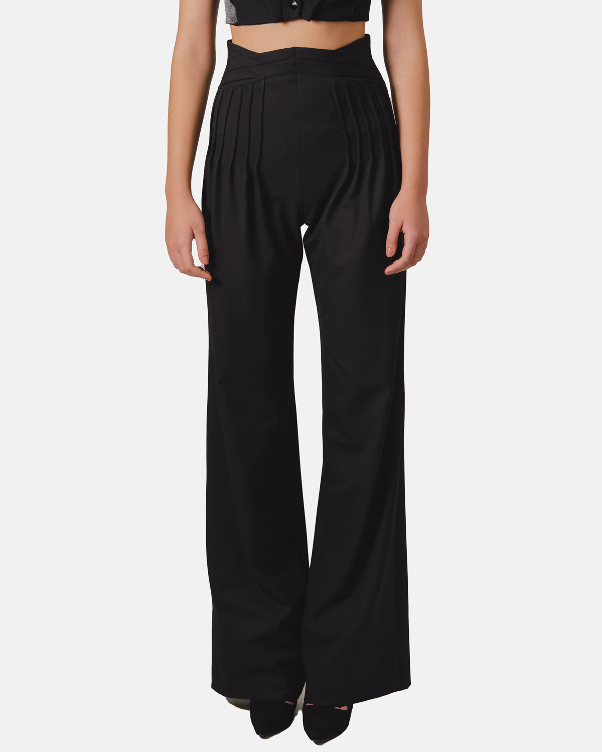 Calças de cintura alta com pregas gráficas e pernas largas